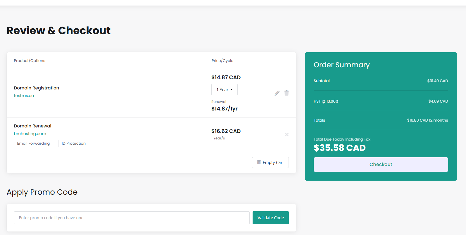 You will be taken to the Shopping cart, you are now a few steps from registering your new domain name.
